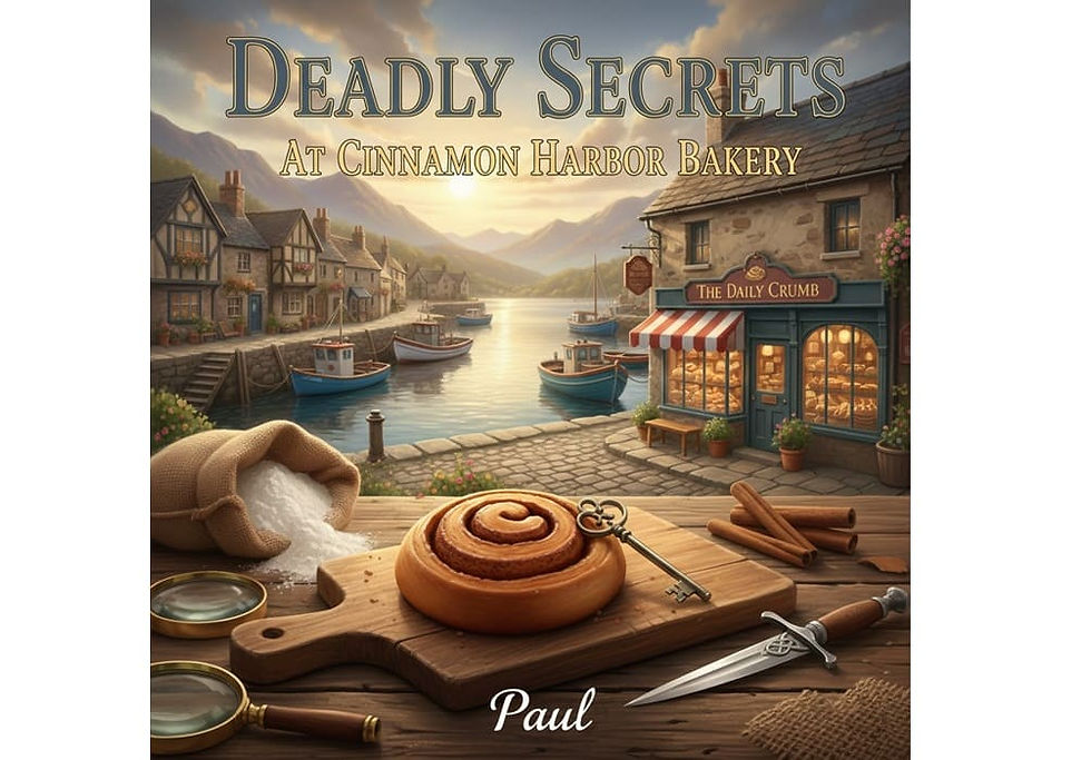 Amazon-Style Blurb: Scones, Secrets, and a Side of Murder. Ruby Vance thought the most stressful part of her day was perfecting her famous cinnamon rolls. She was wrong. In the sleepy coastal town of Cinnamon Harbor, life is as sweet as the glaze on Ruby’s pastries. But when a ruthless property developer—intent on tearing down the town’s historic lighthouse—is found dead behind her bakery, the local gossip turns sour. Even worse? The victim was clutching one of Ruby’s signature treats. With the grumpy (but undeniably handsome) lead detective looking at her as Suspect Number One, Ruby has to do more than just bake; she has to investigate. Between managing a shop full of quirky regulars and a rival baker who would love to see her behind bars, Ruby uncovers a trail of "half-baked" alibis and decades-old grudges. From a mysterious coded letter to a missing maritime treasure, every clue suggests that Cinnamon Harbor is hiding secrets much darker than anyone imagined. Can Ruby sift through the red herrings and find the real killer before her own timer runs out? Or is she about to become the next item on the murderer’s menu? If you love feisty amateur sleuths, small-town charm, and mysteries that keep you guessing until the very last crumb, you’ll love the first book in the Cinnamon Harbor Bakery series. |