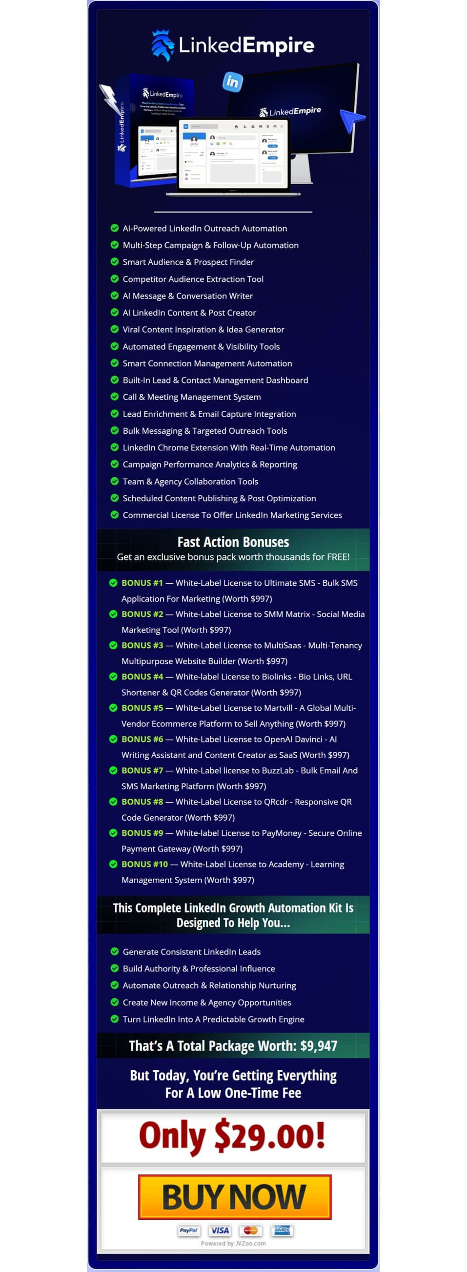 LinkedIn has become the go-to platform for professionals, entrepreneurs, and businesses looking to generate leads, build authority, and expand their networks. With over 1.2 billion users worldwide and nearly half of all B2B website traffic coming from LinkedIn, the opportunity is massive. Yet, many professionals still struggle to turn LinkedIn into a consistent source of clients and revenue. That’s where LinkedEmpire comes in—a powerful all-in-one LinkedIn growth and automation system designed to simplify prospecting, outreach, and content creation.