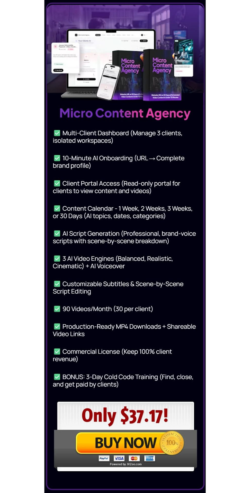 Enter Micro Content Agency, a platform that promises to change the game. Marketed as an “agency-in-a-box,” it claims to let you deliver professional video content services to clients in just 10 minutes, without filming, editing, or hiring a team. At a one-time cost of $37, it sounds almost too good to be true. So, is it really worth it? Let’s dive deep.