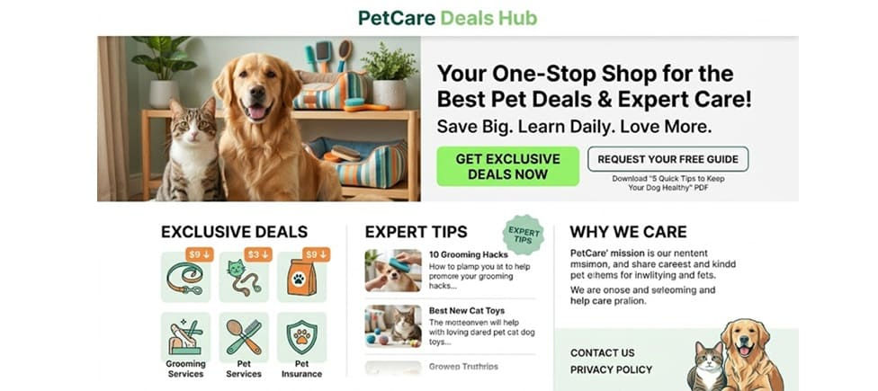 I created a basic funnel called “PetCare Deals Hub”. Inside, I included: